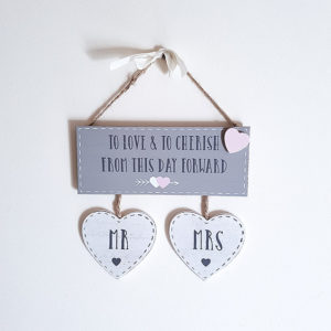 To Love & Cherish Hanging Mrs & Mrs Plaque