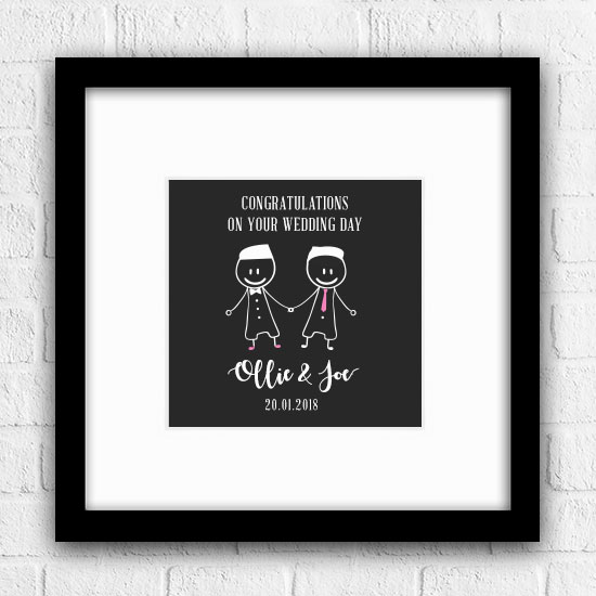 If you are looking for an wedding gift for a gay couple, please look no further! The Mr and Mr Wedding Gift is such a unique wedding present. This beautiful, personalised gift comes in a mounted 3D frame and is 10×10 in size. It includes the happy couples name and date of their wedding.
