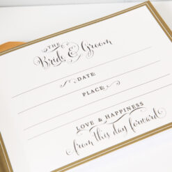 The photo album holds 80 4″ x 6″ photographs and has a wonderful ivory finish with gold hot foil ‘Our Wedding’ detail and a gold tie ribbon on its closure. The photo album is a wonderful wedding gift idea that can be looked back upon for many years to come.