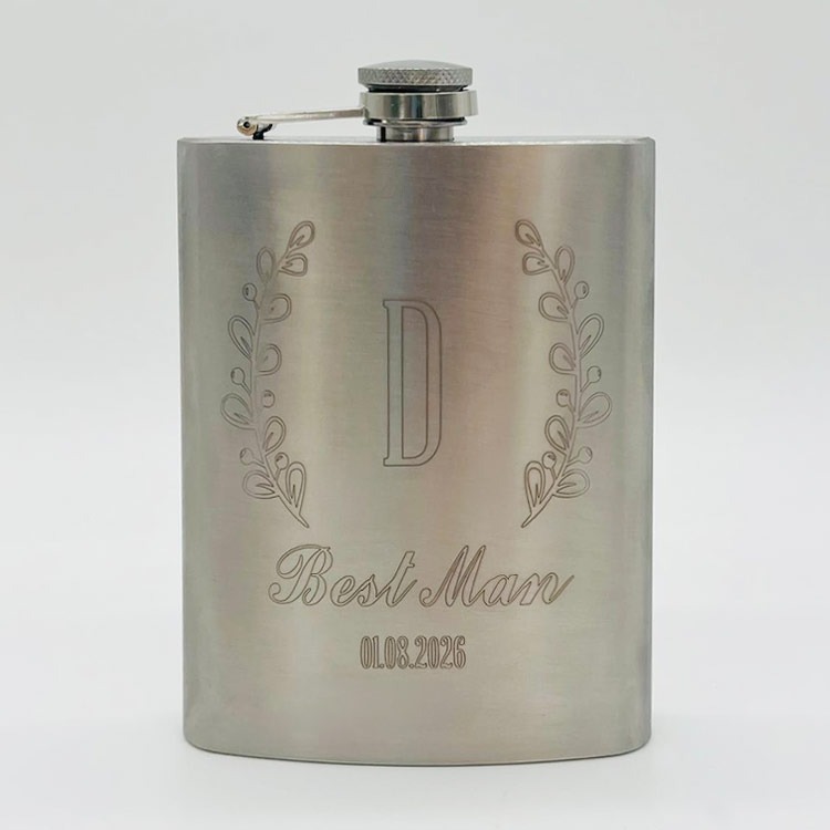 Crafted from durable stainless steel with a sleek silver finish, this classic hip flask is both stylish and practical. Each flask is carefully engraved with your chosen initial, name or date, creating a meaningful keepsake to mark your special day.