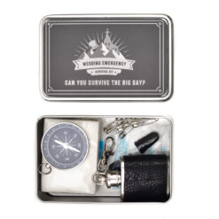 – Kit contains: 1 x compass, 1 x set of ear plugs, 1 x safety pin, 1 x mini hipflask and 1 x pack of tissues